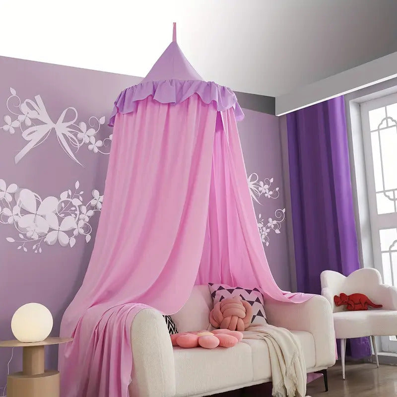 Installez-le centré au-dessus du lit ou en coin pour un coin lecture cosy. La maille fine laisse circuler l’air et adoucit la lumière pour une atmosphère rassurante. Ajoutez quelques coussins (et, si vous le souhaitez, une guirlande LED basse chaleur hors de portée), et l’espace devient instantanément magique.