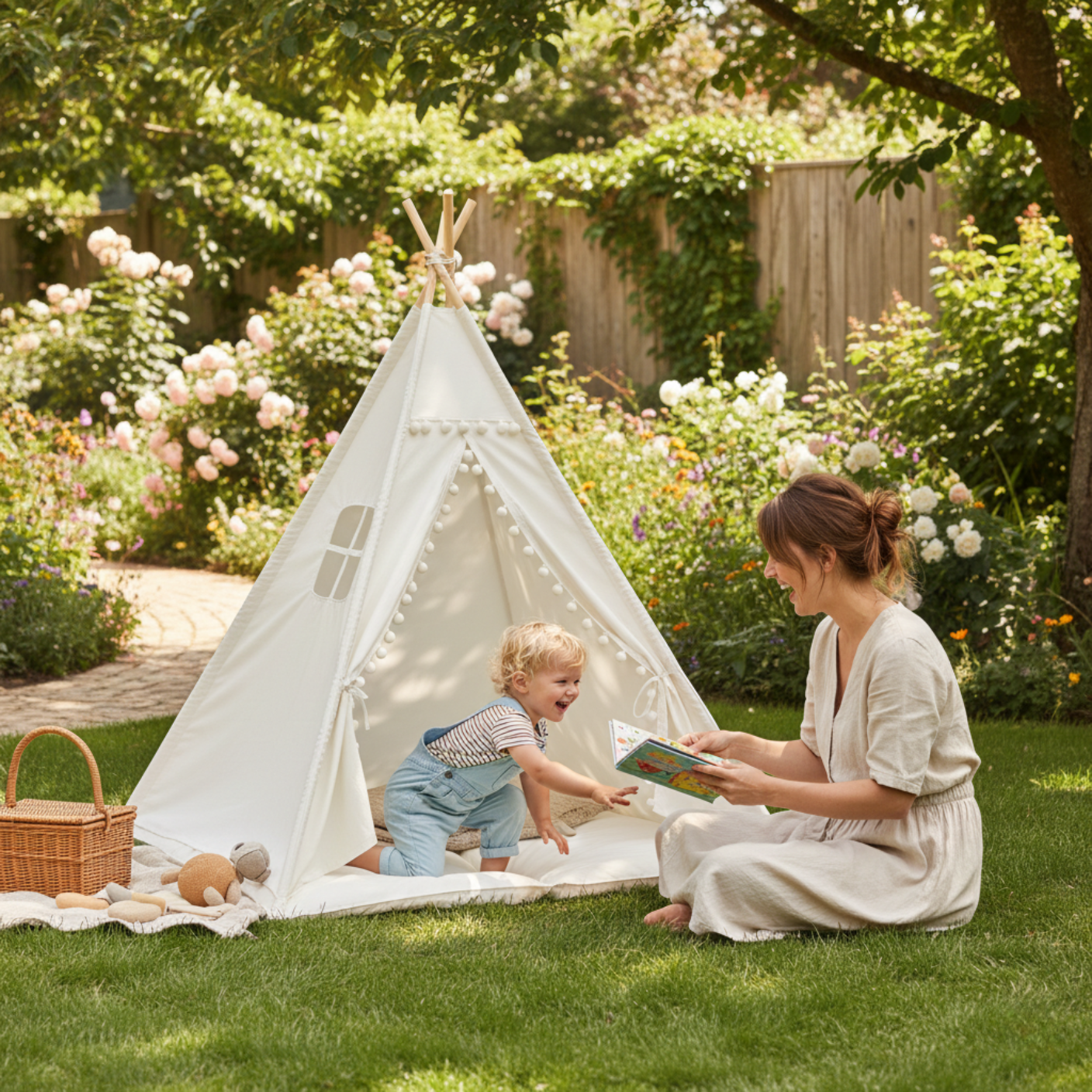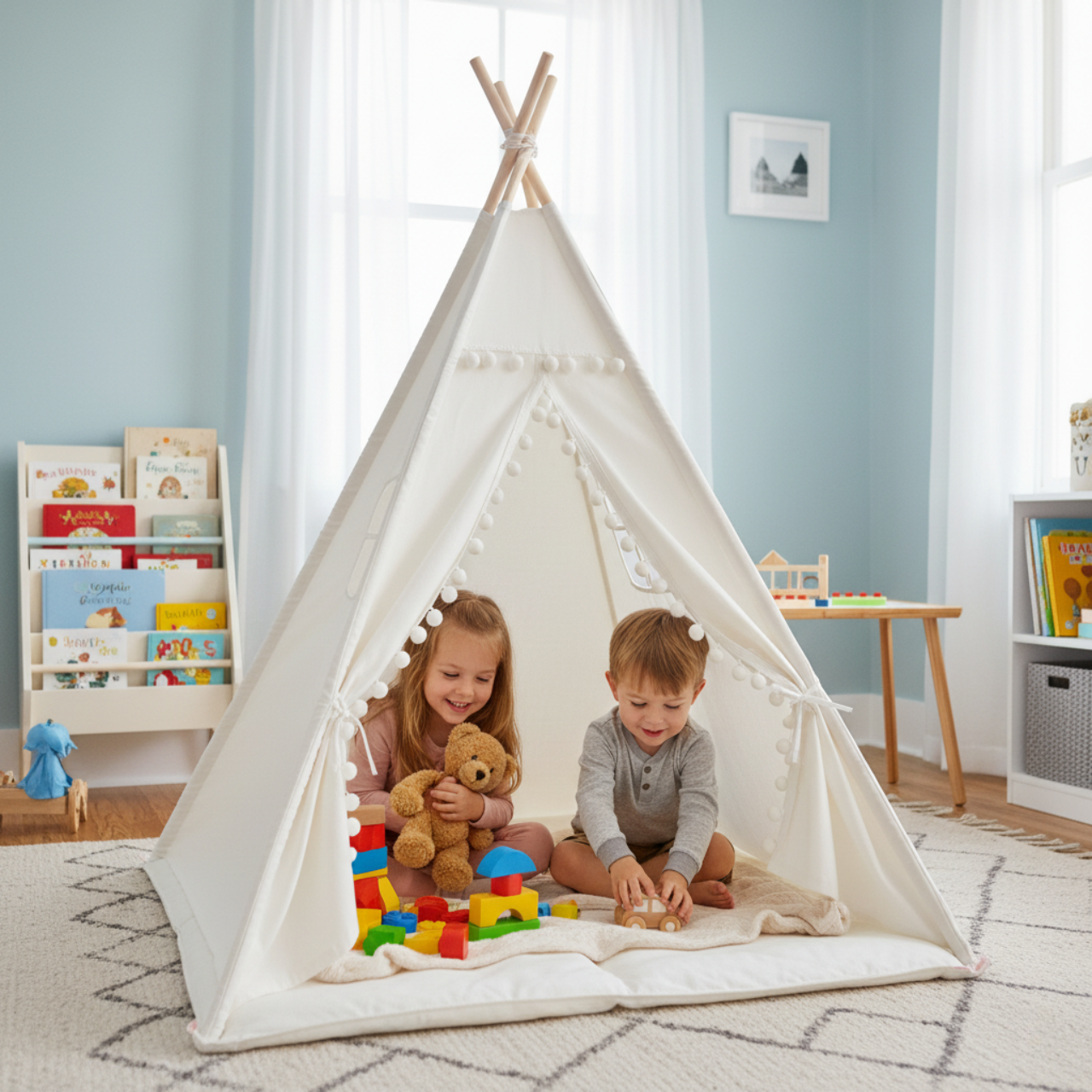 Offrez à votre enfant un espace magique et rassurant avec le tipi Étoile Polaire. Son design épuré et élégant s’intègre parfaitement dans une chambre d’enfant, un salon ou même en extérieur. Plus qu’un simple jouet, c’est un véritable cocon pour rêver, lire, jouer ou inventer des aventures extraordinaires.