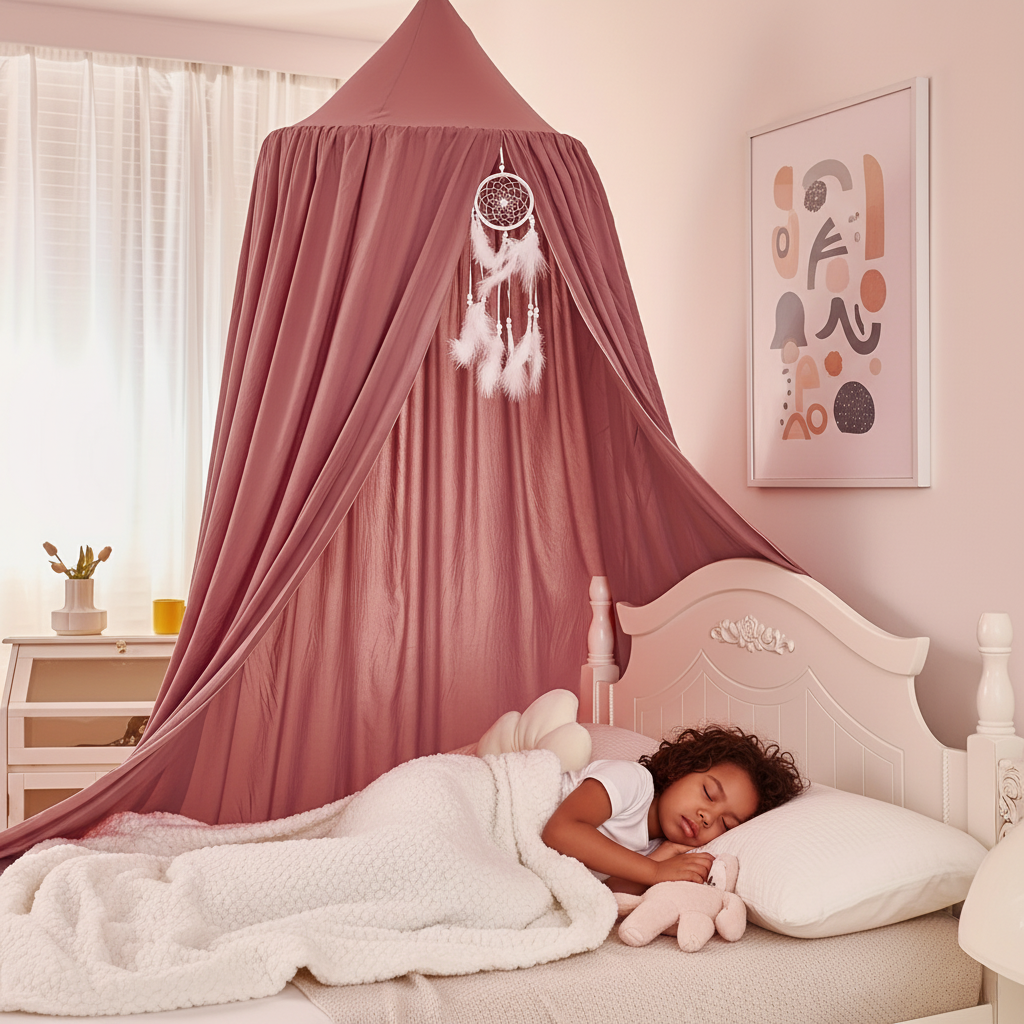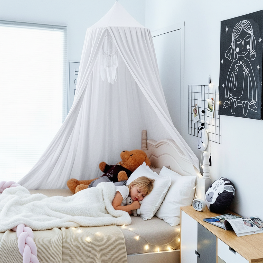 Avec Valonida Voile Céleste, notre ciel de lit pour enfant signature Valonida, crée un coin nuit ou lecture apaisant en quelques minutes : un baldaquin léger qui filtre la lumière, dessine un joli drapé et ajoute cette touche “wahou” que les enfants adorent.